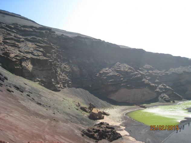 Acantilados y lago verde,