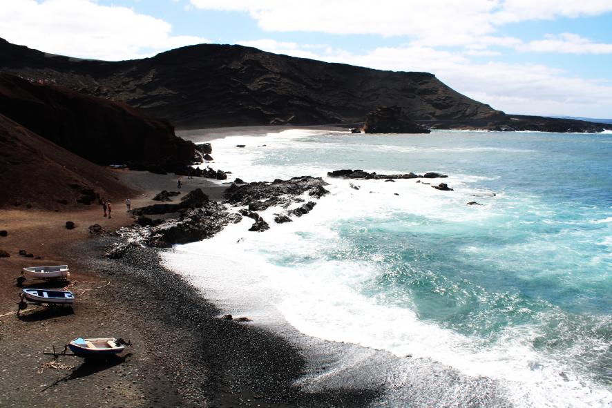 El Golfo es, en sí misma, la mitad del cráter de un volcán formado por las erupciones de Timanfaya, entre los años 1730 y 1736. Se alza como una gradería abierta al