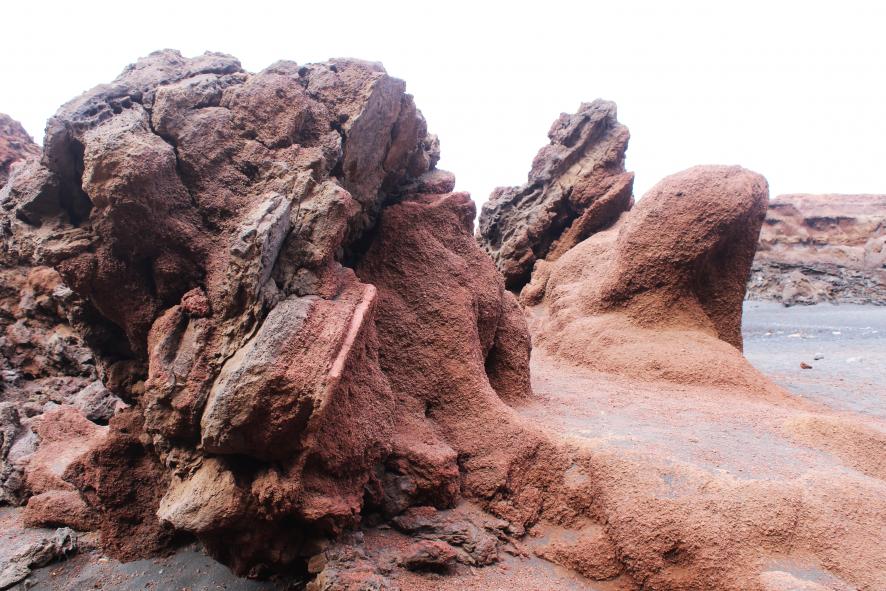 Erosión en la lava roja por el agua del mar, laguna verde, EL GOLFO