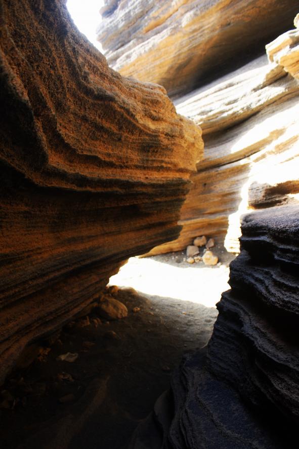 Montaña Blanca, de 600 m de altura. Se han formado 3 grietas. Las grietas no son muy largas, pero sí bastante estrechas, y recuerdan a una versión en miniatura de los cañones de Arizona y Utah. las fracturas se crean cuando la lava se enfría, contrastando con las