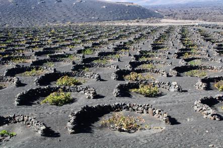 A lo lejos una bodega rodeada de vides, YAIZA