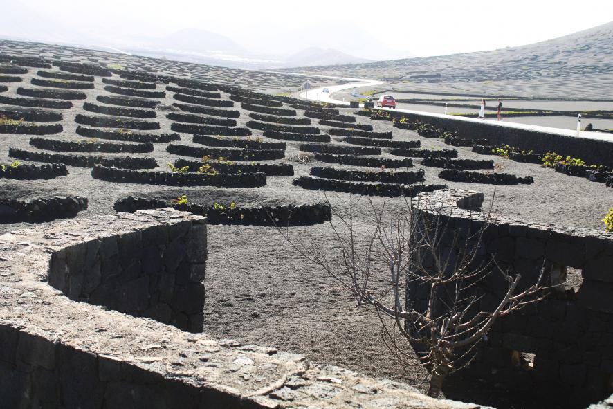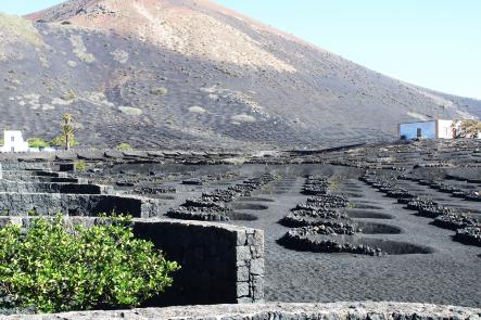 paisaje volcánico. Fue aprovechada para la plantación de vides para la producción de vino, siendo abundante la variedad Malvasía. Las vides se plantan en conos formados en el lapilli, llamado localmente picón, y protegidas adicionalmente por pequeños muros de