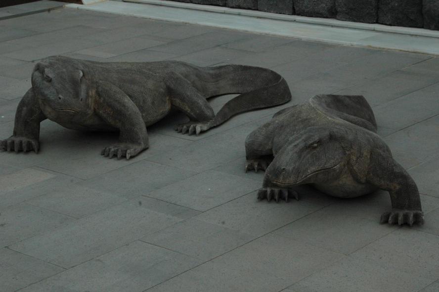 Reproducción en madera de dragones de Komodo,