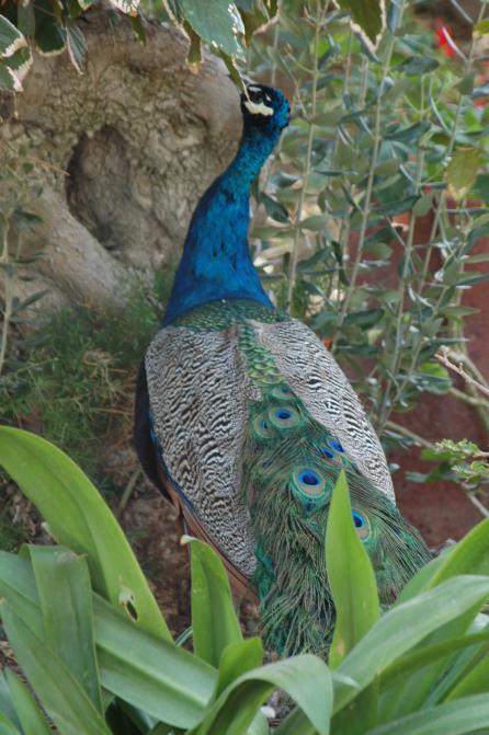 Pavo real entre plantas,