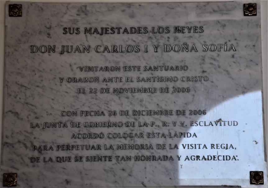 Placa conmemorativa en Real Santuario del Santísimo Cristo de La Laguna,
