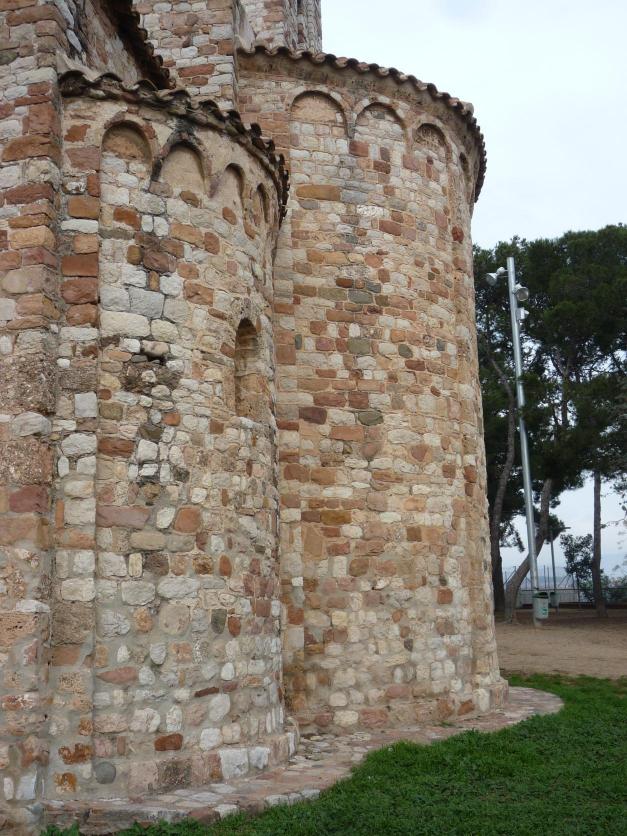 En el exterior del templo, se aprecia la decoración lombarda de arcuaciones y lesenas en los ábsides y en la