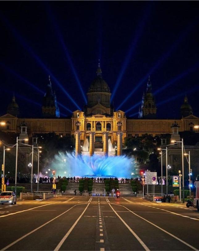 Vista nocturna del palacio. dé Montjuic,