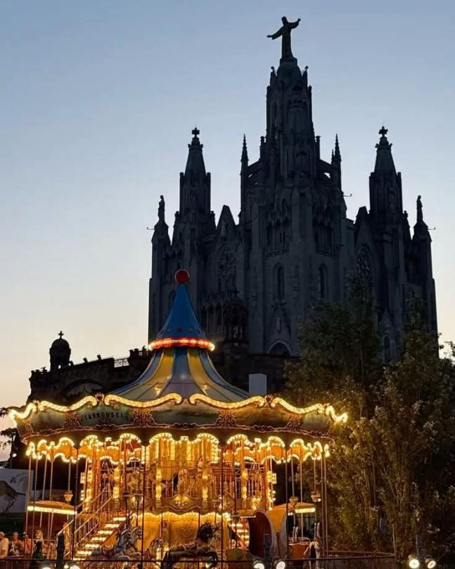 Atracciones iluminadas del parque del Tibidabo,