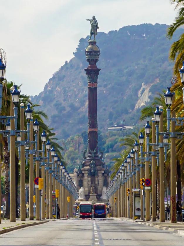 Colón paséo de las farolas de fondo Montjuic,