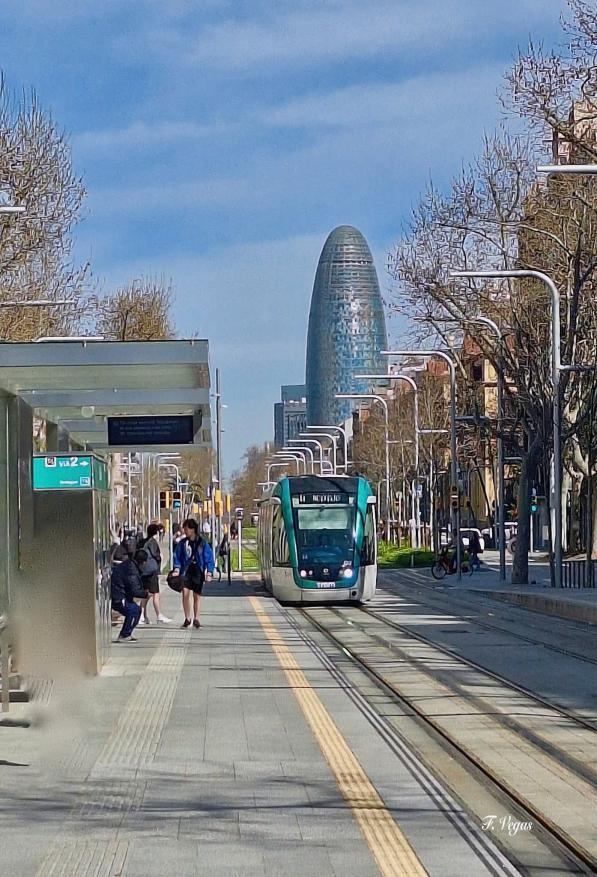 Tranvía circulado por la avenida de la diagonal Barcelona,