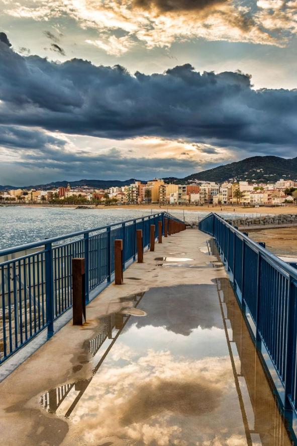 nubes de colores desde la pasarela del puerto,