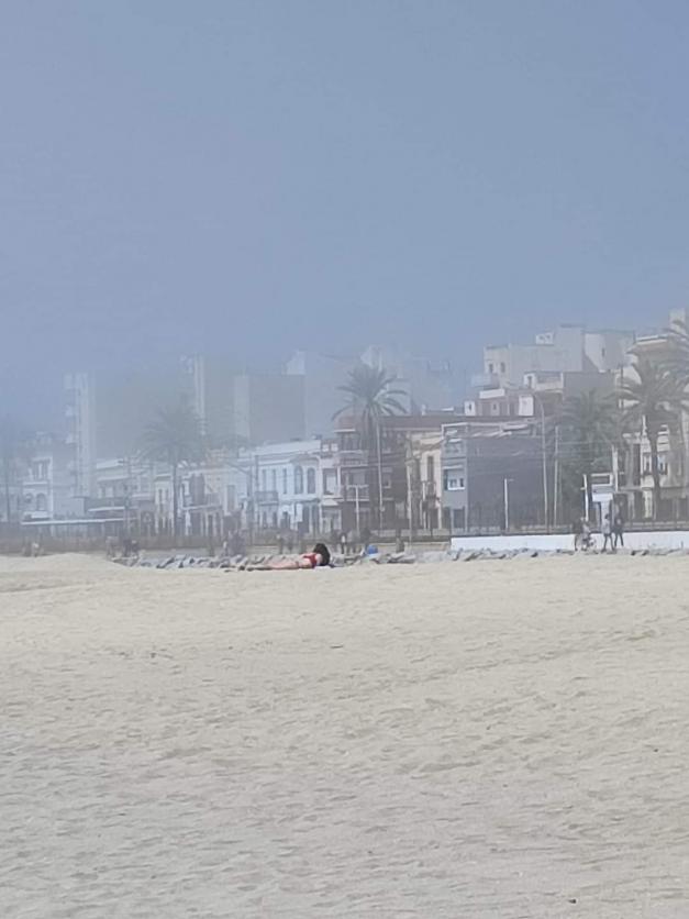 Día de la madre playa con niebla,