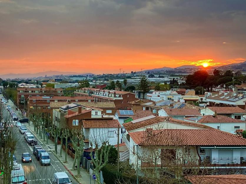 Puesta de sol por encima de las casas,