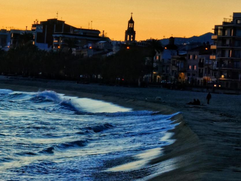 Anochecer desde la playa se encienden las luces ????,