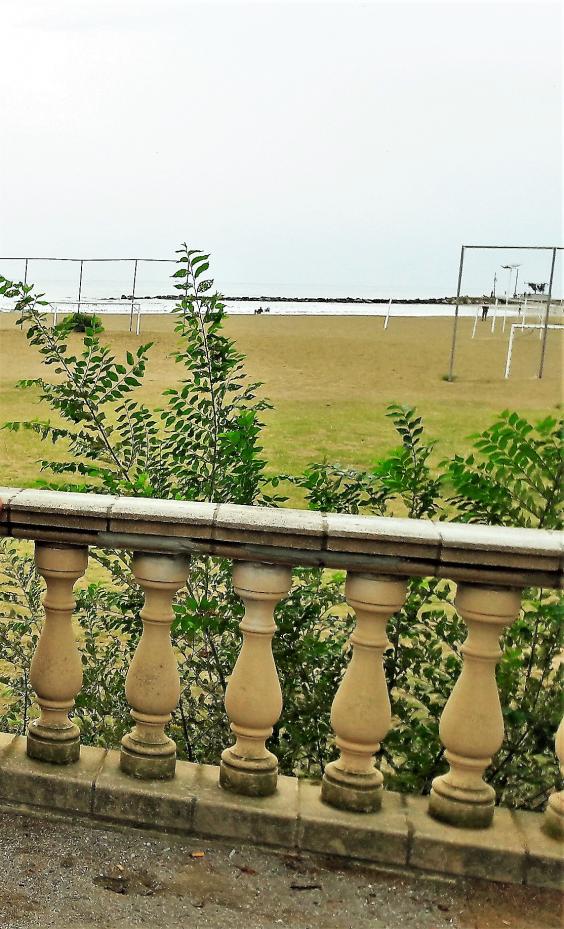 La playa desde la barandilla del Parque de Ribes Roges,
