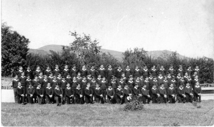 Mira me acuerdo cuando se saco esa foto, y yo me parece que estaba de pie, lo que no me acuerdo bien en que fila, y tengo la foto un poco ampliada en la computadora, pero igual no me reconozco, el primero a la drecha de la tercera fila es Elidio, ¿o sea que tu estas al lado de Elidio?, ¡ah no del otro lado, al lado de Portella, joder creo que ahora me vi, y creo que soy el septimo de la misma fila que estas tu, al lado del de antojos ¿que no te reconoces? tu eres, el segundo por la dercha. en la primera fila e y yo como te decia segundo por la drcha. en la tercera. TU mirate bien. Pues sabes que yo tampoco me hubico en esta foto, se que estoy porque me acuerdo cuando la sacaron, y reuerdo que al pricipio si sabia donde estaba pero ahora no me encuentro, si se que estaba entre los que estan de pie´en la penultima fila, porque lo de la última estan subidos arriba de una tarima o algo así que habia al borde de la pileta, tendria que dividir la foto en dos, haber si nos vemos mejor Pues si yo la verdad que no estoy se guro si entramos en el 63 ó en el 64, pero me inclino mas por el 64, o sea desde el 64 hasta el 68, tambien me parece que nosotros fuimos los últimos que recluto el P Dueñas, porque los que entraron el año posterior tambien fue el P Vaca quien los trajo, ah y otra cosa, fuimos los últimos que al final de cada trimestre cuando primero y segundo tenian la cocertacion, (que aun poseo la banda de general que me saque en una) los de tercero tiuvimos la ultima clase... Si que es dificil reconcernos yo creo tu eres de los de rodillas el segundo por la derecha y yo si tubiera que arriesgarme soy el de la 3 fila incluida la tuya, tambien segundo por la derecha, y si somos los mismos que en tu foto del parque seguro que eres del 64 porque ahi si te puedo decir el nombre de al menos unos 12 y a otros los reconozco y somos del 64 solamente que a mi zona era el padre Juan Jose Vaca el que me recluto. Saludos