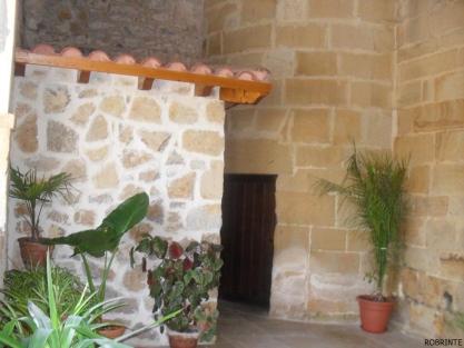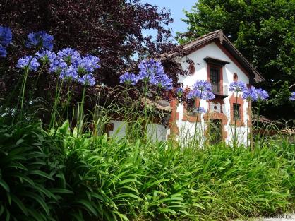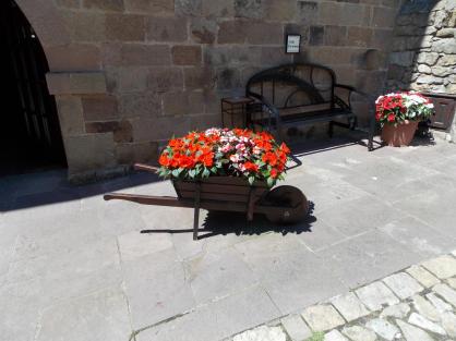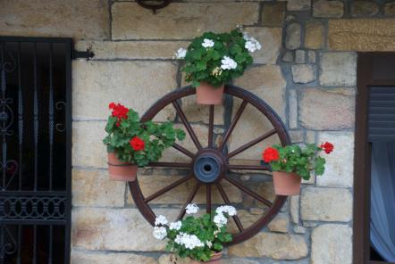 Piedra, madera y geranios