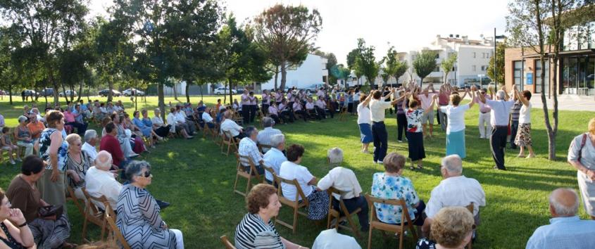 Panorámica de la audición de sardanas frente al local de Jubilados.