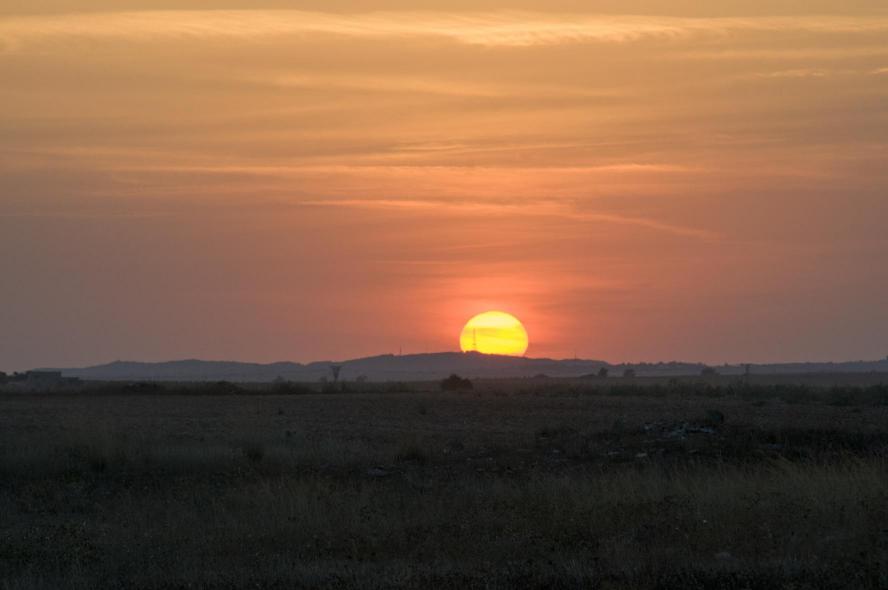 Casa Rural de Las Albarizas. El Sol, en el horizonte, emite los últimos rayos de luz.