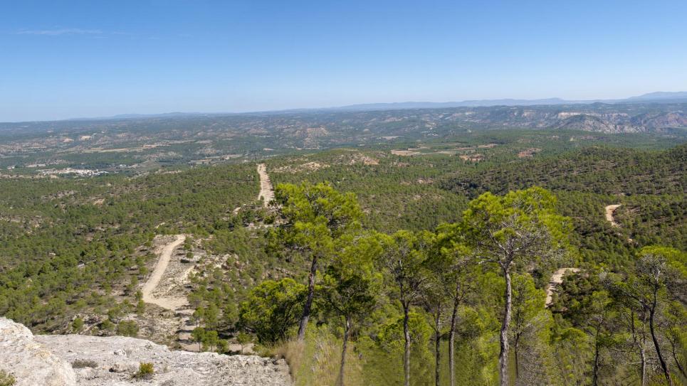 A la izquierda de la imagen, podemos observar el vecino pueblo de Villatoya, a la derecha, aunque no es visible, se encuentra la pedanía de Cilanco. Al fondo, en el horizonte, las montañas de otras localidades de la C. Valenciana.