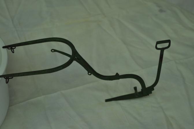 Herramienta agrícola hecha en miniatura. Utilizada para arar la tierra. Se usaba en los años 60 y anteriores. Autor: Luis Soriano "El Herrero".