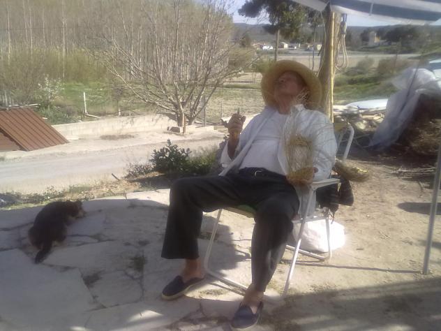 maestro artesano del esparto descansando,