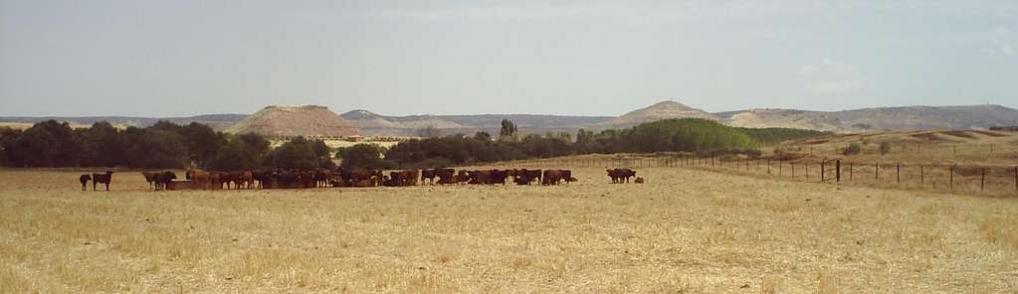 ¿ Ves aquel cerro, allá a lo lejos, a la derecha de la imagen, que sobresale por encima del conglomerado de árboles verdes ?. Es el "Cerro del Collao", y detrás de él está Povedilla, último pueblo de la provincia de Albacete por esa parte. ...Si quieres "toros", no hace falta ir a Las Ventas, en Reolid los tenemos todos los dias.