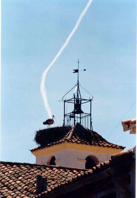 Cigüeña en la torre de la iglesia,