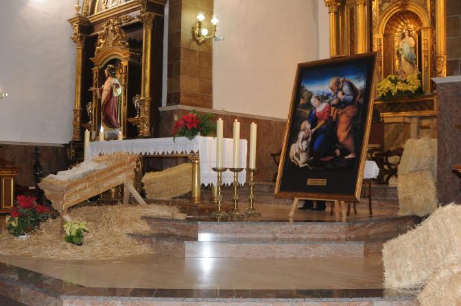 Estos años se suele poner un pesebre con paja y la imagen del niño Jesús metido en el pesebre, y últimamente se ilustraba y adornaba el altar con algún cuadro que tuviera que ver con la Sagrada Familia.