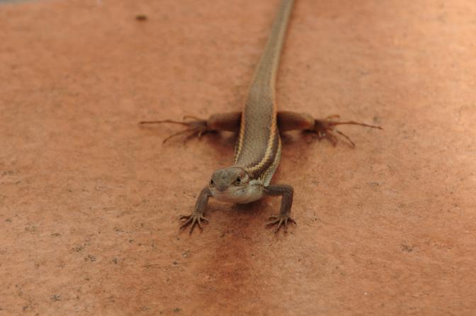Por eso me llamo la atención, de repente la vi por el suelo del patio y cuando cogí la cámara se quedo quieta para que le hiciera varias fotos, hasta que se canso y se fue por la pared.