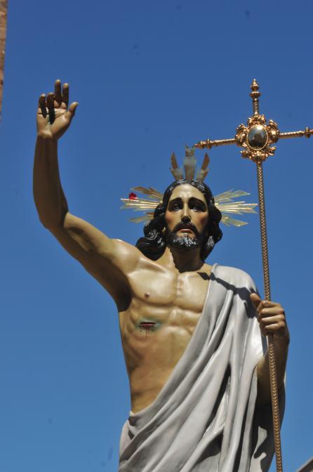 Cristo resucitado sobre el cielo azul,