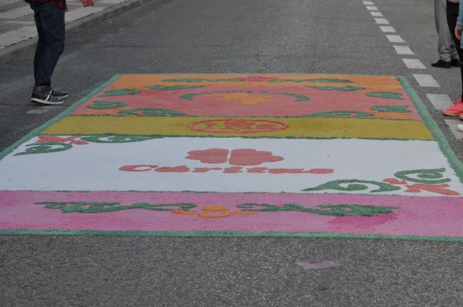 En otros lugares si las he visto realizar y es lo que usan, pones la plantillas echas la sal de ese color, retiras la plantilla y después con cuidado rellenas los alrededores de la sal de otro color. Y que tienen plantillas de papel para realizar estos trabajos de alfombras de sal o como lo realizan.