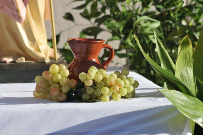 Vino y uvas. Altar de la cruz y los ángeles,