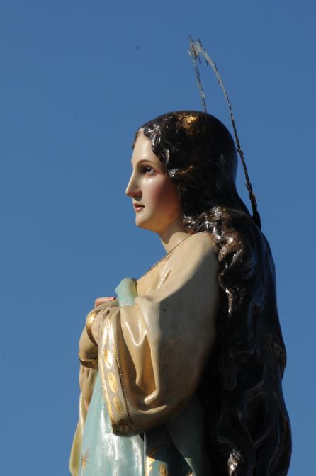 Detalle de la Virgen con el cielo azul,