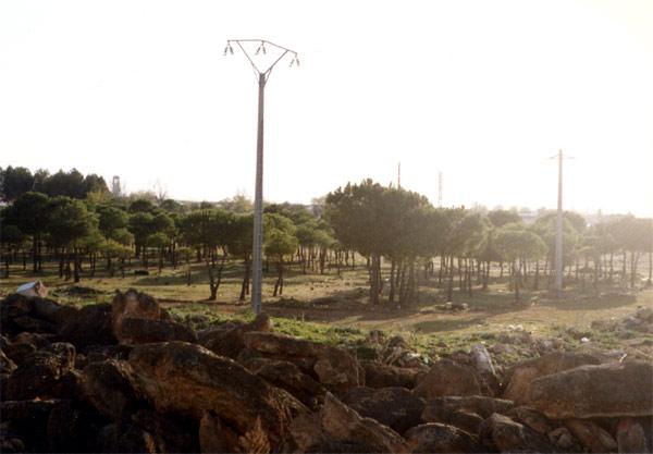 Monticulos de piedras gordas junto a pinares,