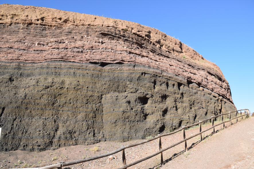 Corte vertical en el cráter del volcán Cerro Gordo,