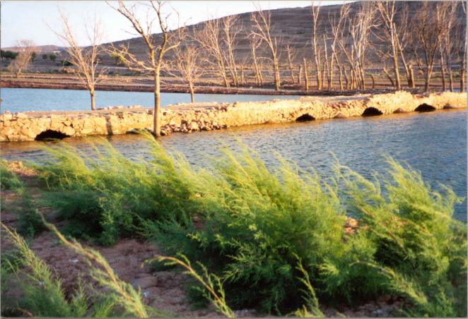 Vega del Jabalón, visible solamente cuando las aguas bajan de nivel, y él queda en la superficie para que todos podamos admirar ésta gran obra.