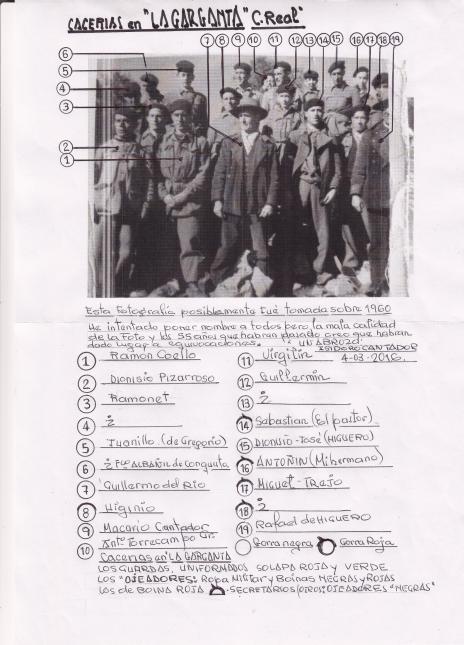 LA GARGANTA con un grupo de Ojeadores, todos uniformados y distinguiendo su misión con las Boinas "ROJAS" para los Ojeadores y "NEGRAS" para los Secretarios y Ordenanzas que estaban en los Puestos de Tiro.