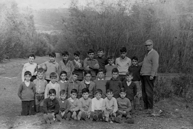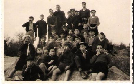 hola soy paqui, el segundo niño de la derecha, que sobresale de los demas es mi primo Hermenegildo, y de los que estan sentados el primero de la derecha, con cara de niño bueno es su hermano Emilio, hijos de Crescencio y de Maria, un saludo El cuarto de los chicos de pie y por la derecha creo que es Manolo García Calatrava, hijo de Felipe y Josefita.