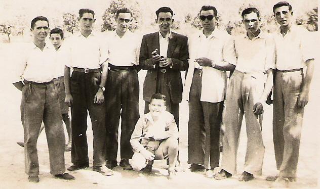 DE IZQUIERDA A DERECHA: ANTONIO REY – PACO ZAMPALLO – RAMONÉ – ANTONIO (HERMANO DE FELIPA) – FEDERICO (TRAJE NEGRO) – PEDRO MUÑOZ – VIRGILIO – EMILIO FLORES – NIÑO (*)