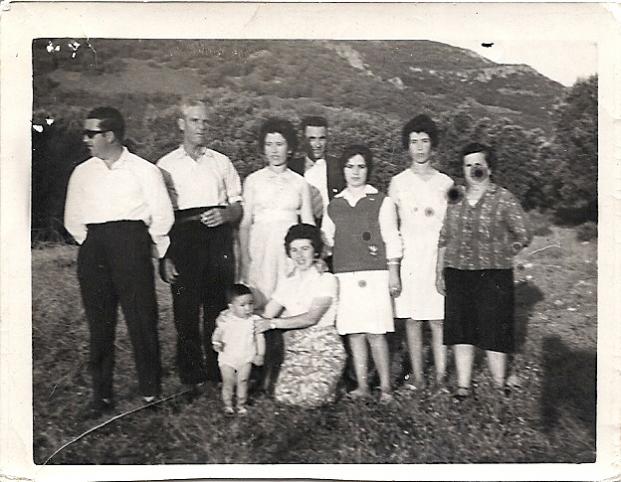 de izquierda a derecha, mi padre antonio, mi abuelo pedro, mi madre araceli, mi tío federico, no se, mi tía juli hermana de mi madre, y mi abuela crecelia, debajo esta mi tía felipa con mi hermano pedro
