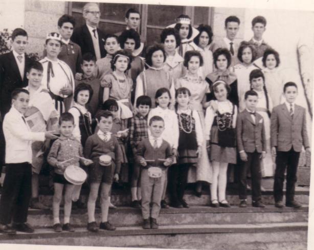 de izq. a dere. JUANELE, el de la corona mi primo LAZARO, detrás, ALFONSIN al lado, D. RICARDO. El que asoma la cabeza al lado de D. RICARDO, mi hermanoMANOLIN,