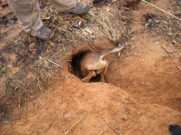 perro entrando en zorrera,