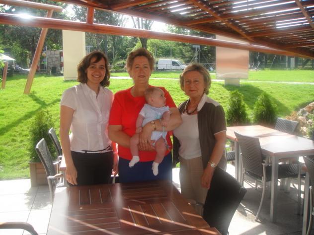 Orosio, ahí te mando una foto de Hortensita, su hija y su nieto acompañados por Mari Calero.