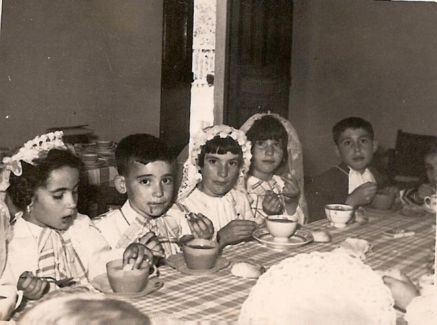 Andrea, Juan Antonio y otros niños haciendo la