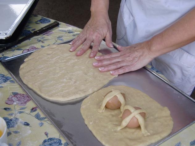 Y aquí en esta haciendo los hornazos....