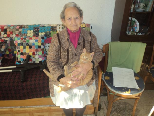 Mi viejilla con su gato, ya desaparecido.