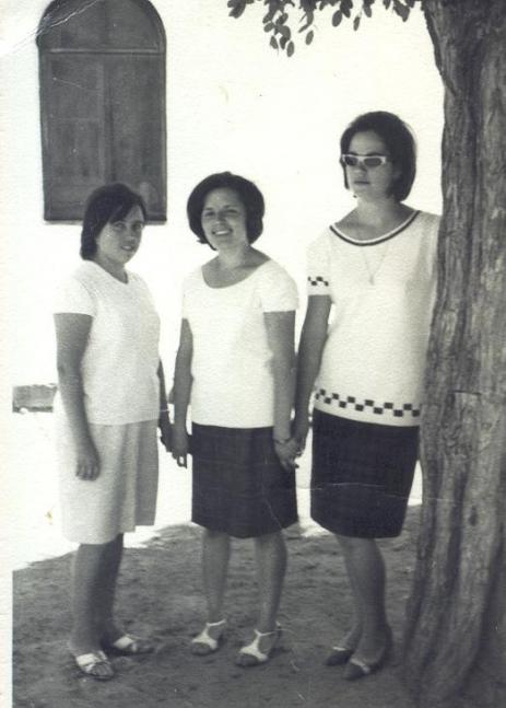 Soy María Pablo Moraira hija de Manuel Pablo y de María Josefa Moraira, mando esta foto de unas fiesta en la Garganta de la Virgen del Carmen, en donde estamos, Nieves la de la izquierda, Lali la del medio, y yo la de las gafas de sol.
