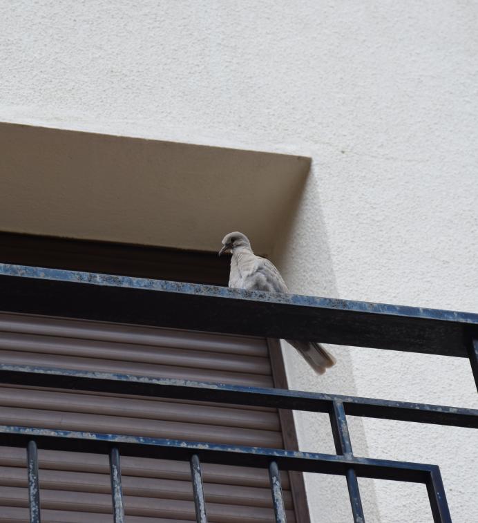 Paloma en la barandilla de un balcón,