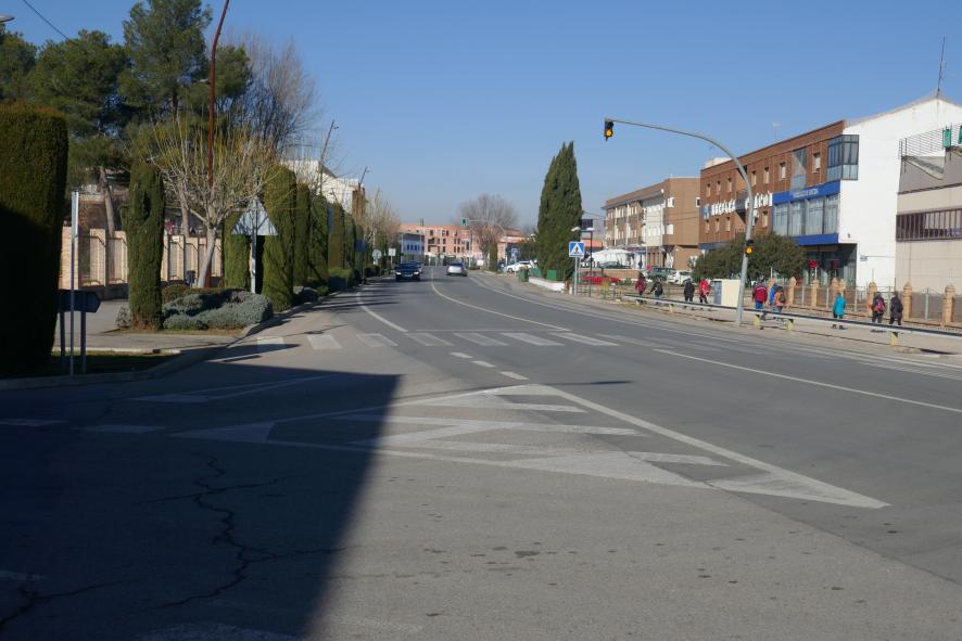 Ciprestes podados en la calle principal,